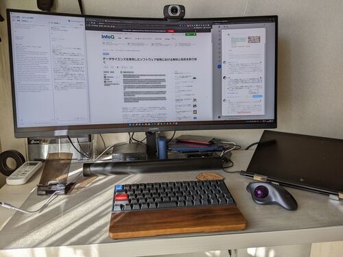 リモートワークだと自分の家の環境が大事になってくるので、色々整備をしています。 宅内ネットワークのギガビット化やPCの新調などをしてきたのですが、今回はディスプレイを新しいものに変えたので、その事を書きます。 設置してみたところはこんな感じで…